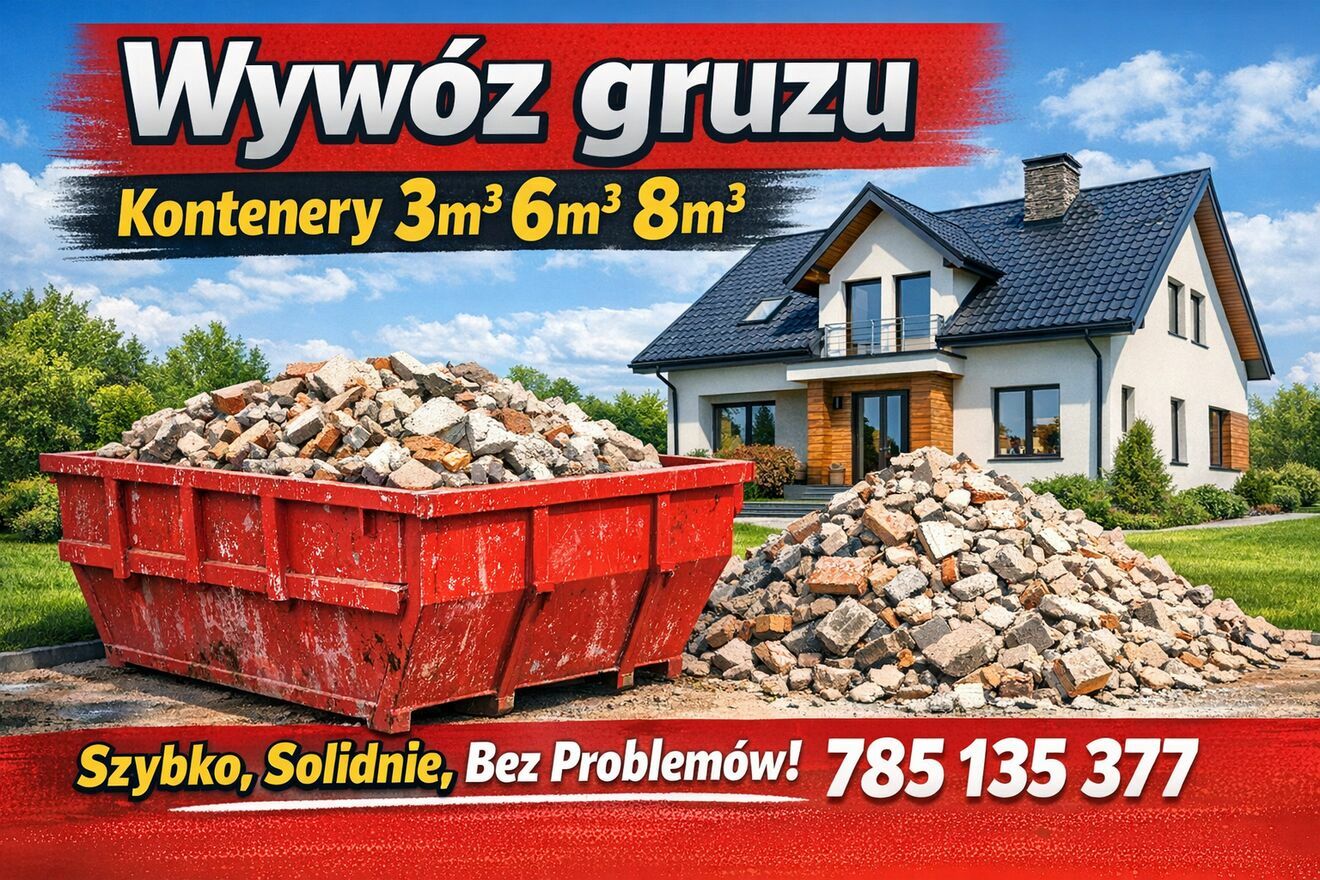 WYWOZ GRUZU I ODPADÓW ZIELONYCH – KONTENERY 3m³, 6m³, 8m³Oferujemy szybki i profesjonalny wynajem kontenerów na: