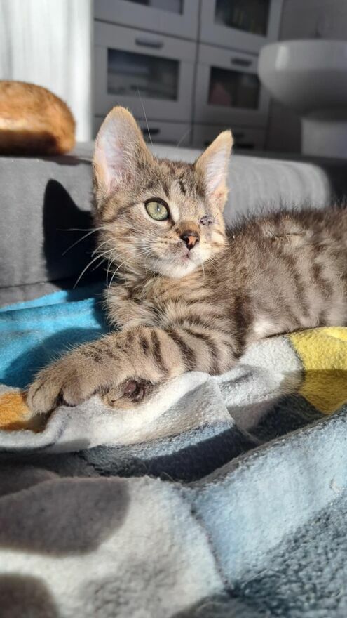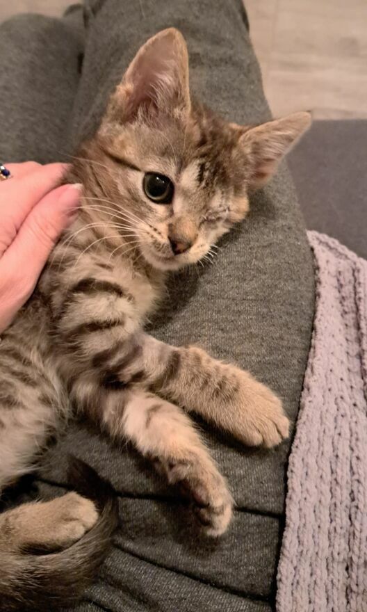 Kotka jest zdrowa (po zabiegu), zaszczepiona, zachipowana i odrobaczona, korzysta z kuwety i jest gotowa do adopcji.
