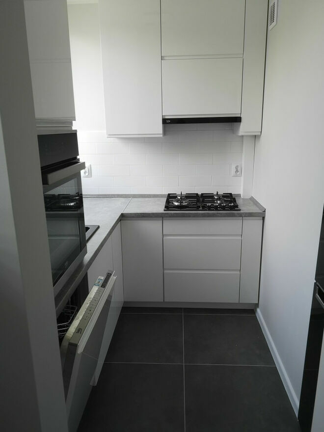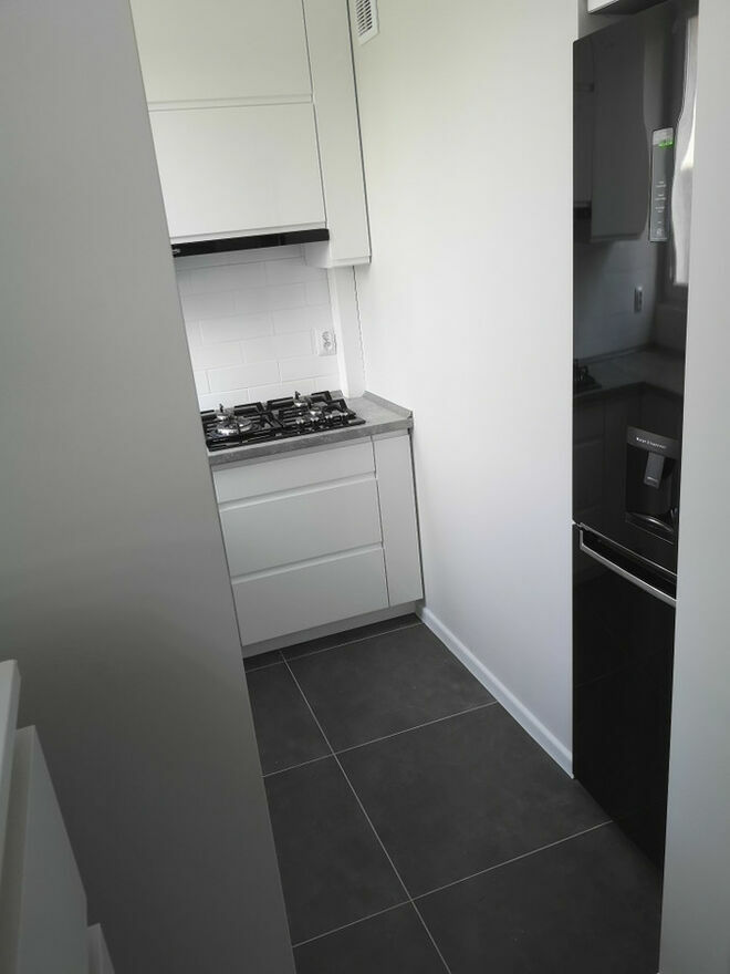 Z salonu do kuchni. Mieszkanie bez balkonu.