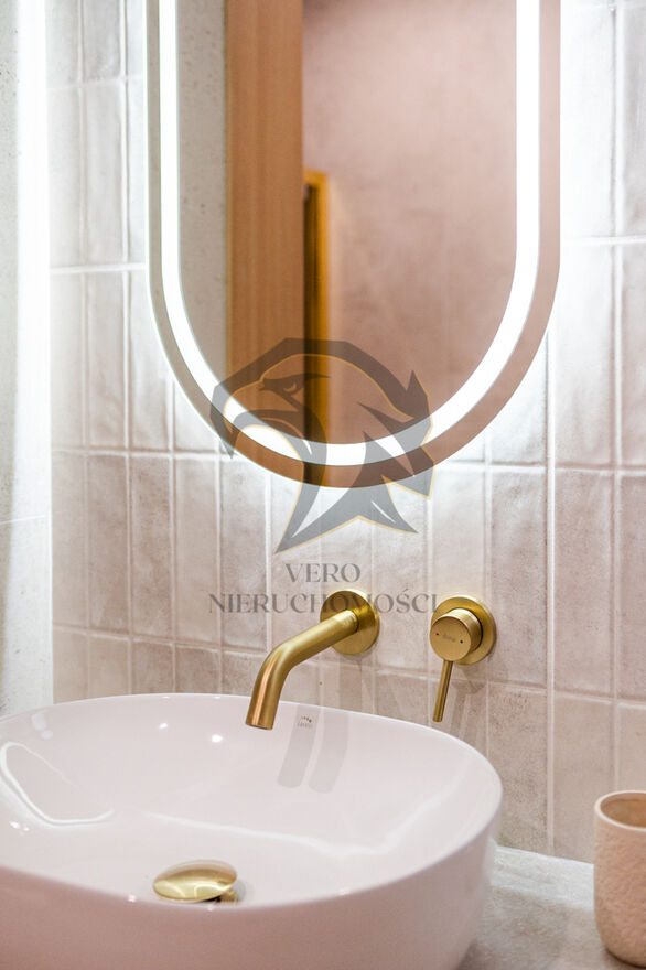 Wnętrze urządzone w nowoczesnej, ponadczasowej estetyce. Złote